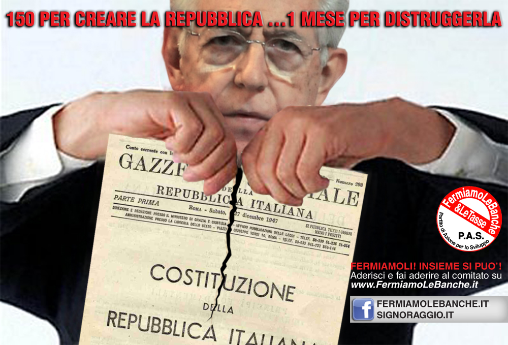 Il comitato FermiamoLeBanche ha superato quota 3.500 adesioni: si tratta di un PUNTO DI INIZIO, in vista dell'incontro costitutivo che si terrà a fine Gennaio: sarà basato su regole democratiche e la partecipazione, ma sopratutto certo non stenderemo il tappeto rosso a Monti & co. visto che il promotore - l'avv. Marra - lo ha persino querelato per l'appartenenza al bilderberg, inoltre prima di ufficializzare la ns adesione, abbiamo ottenuto precise garanzie: SARA' LOTTA DURA, CON TUTTI GLI STRUMENTI CHE LA DEMOCRAZIA CI METTE A DISPOSIZIONE... condurremo contro le banche e i poteri forti un attacco giuridico-costituzionale, visto che i cittadini che avrebbero facoltà di fare CAUSA alle banche ma non lo sanno sono MILIONI: il Comitato farà informazione, e fornirà assistenza e consulenza legale: assumeremo molte iniziative, ma ci sarà bisogno del supporto e dell'aiuto di tutti... per questo vi invitiamo ad aderire e far aderire, promuovendo il più possibile l'iniziativa (qui materiale da divulgare: http://bit.ly/uzRmVf)